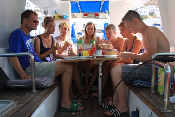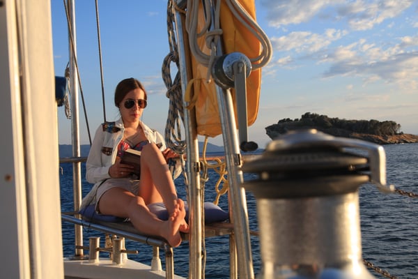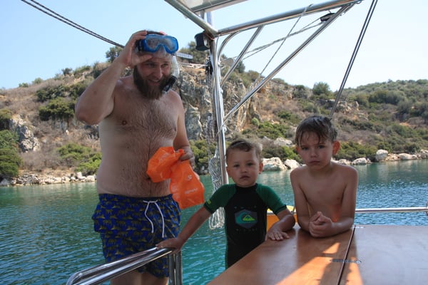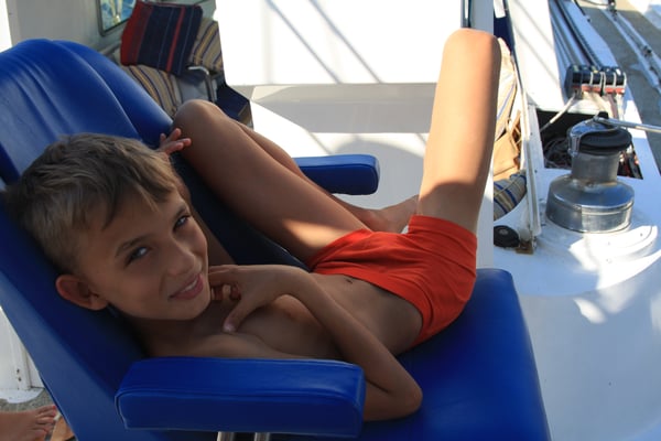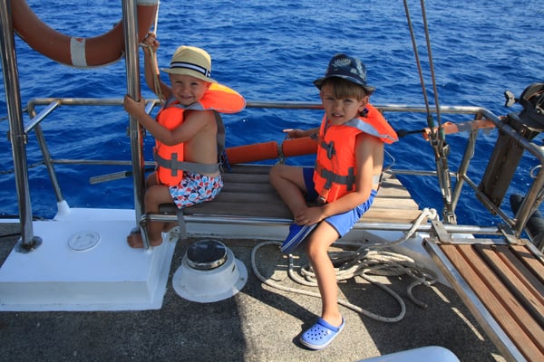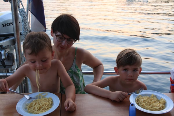 Nasz najmłodszy uczestnik miał 4 lata, więc nie był jeszcze doświadczonym żeglarzem (co innego, gdy rok później znowu z nami popłynął!). W rejsach rodzinnych nie jest wymagane żadne doświadczenie żeglarskie. Oczywiście uczestnictwo w manewrach i innych zajęciach pokładowych jest zawsze mile widziane. No i można się uczyć wszystkiego, czego potrzeba do stania się wytrawnym żeglarzem. Są na pokładzie podręczniki, jest też skipper doświadczony w nauczaniu żeglarstwa.