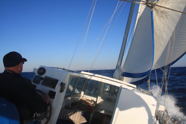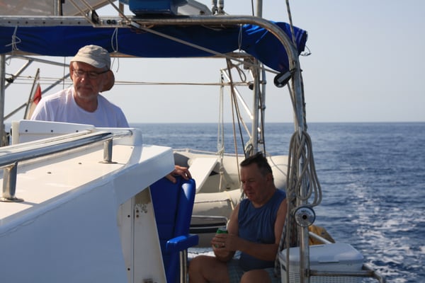 Wij zeilen naar de volgende bestemming - een haven of een baai. Maar het kan zijn dat wij een langer traject voor de boeg hebben. In dat geval blijven we ook 's-nachts varen. Het koken, eten en afwassen gebeurt uiteraard tijdens de tocht. Alle handelingen aan boord (de navigatie, het bedoienen van de zeilen en de motor, het sturen enz.) worden uitgevoerd door ons allemaal verdeeld in 3 scheepswachten.